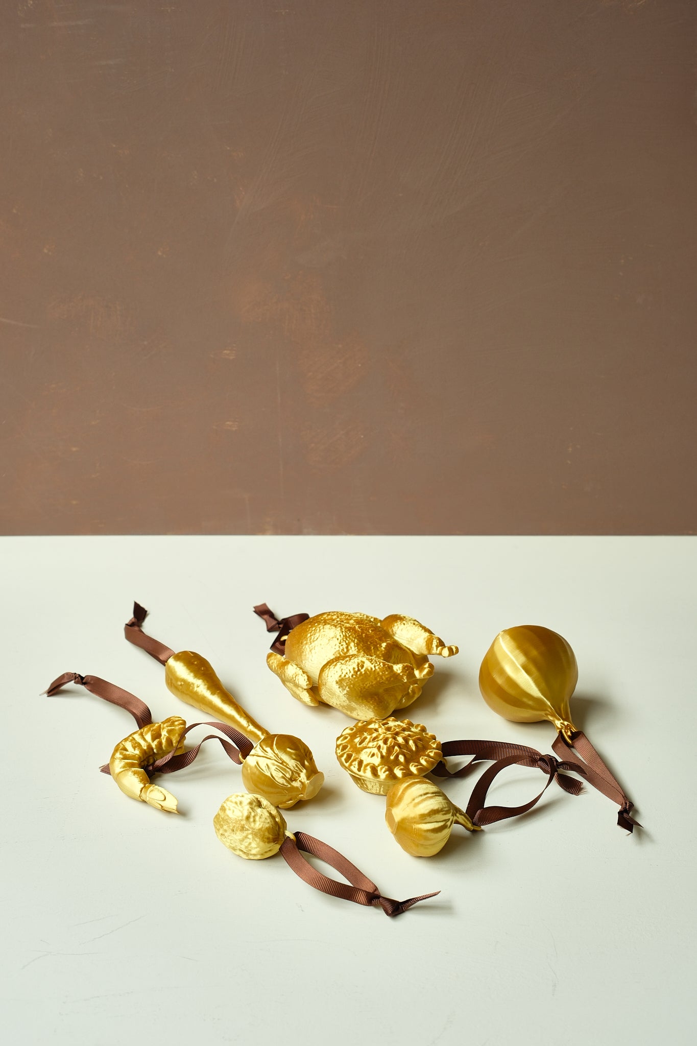 A full Christmas dinner now ready to hang on your Christmas tree! Made from an environmentally friendly gold PLA (a bio plastic) with a light glitter finish. Choose from all the best elements of your festive feast plus some additional extras or buy the full set.